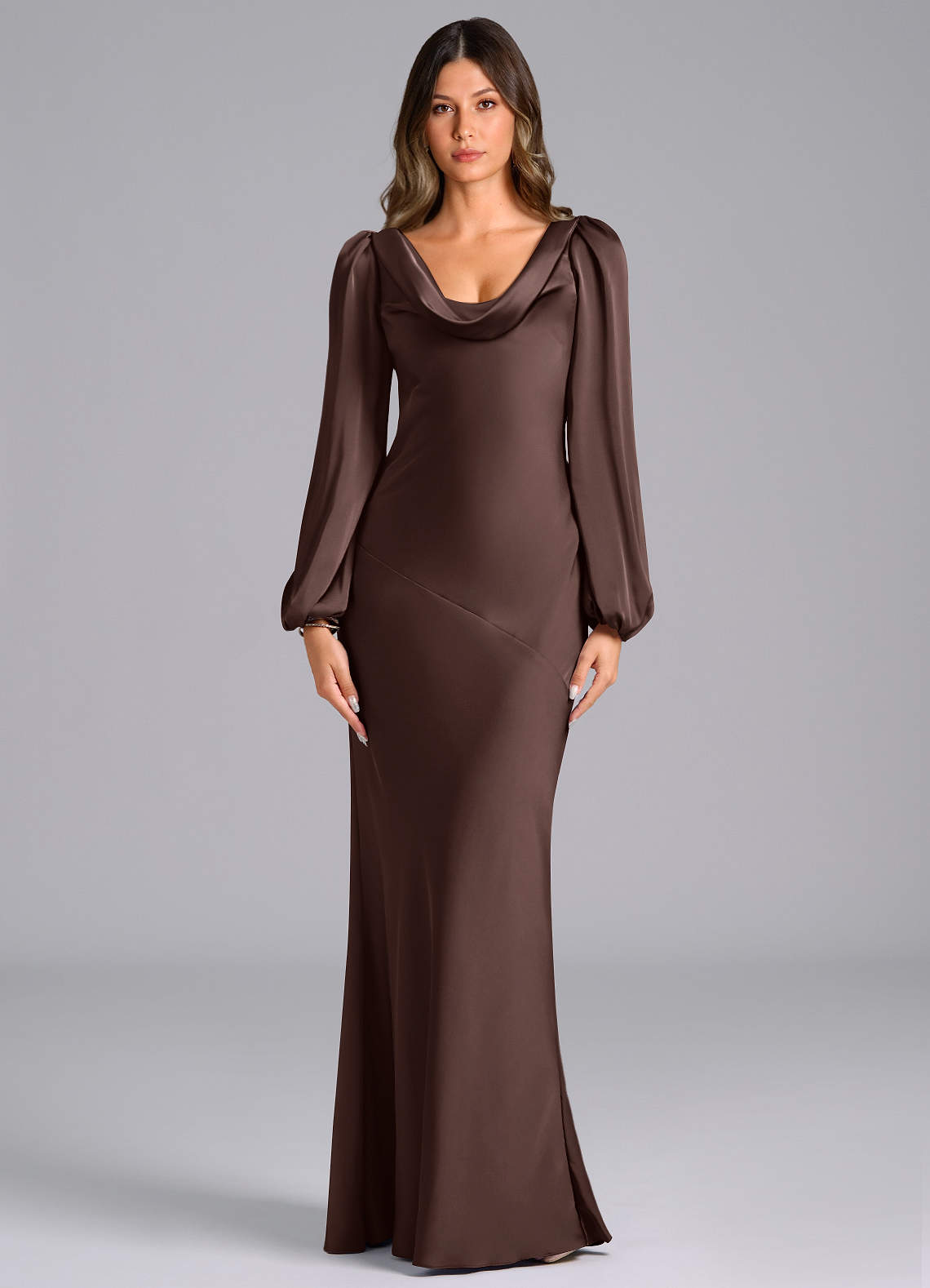 Eucalyptus Mermaid Long Sleeve Stretch Satin Dress