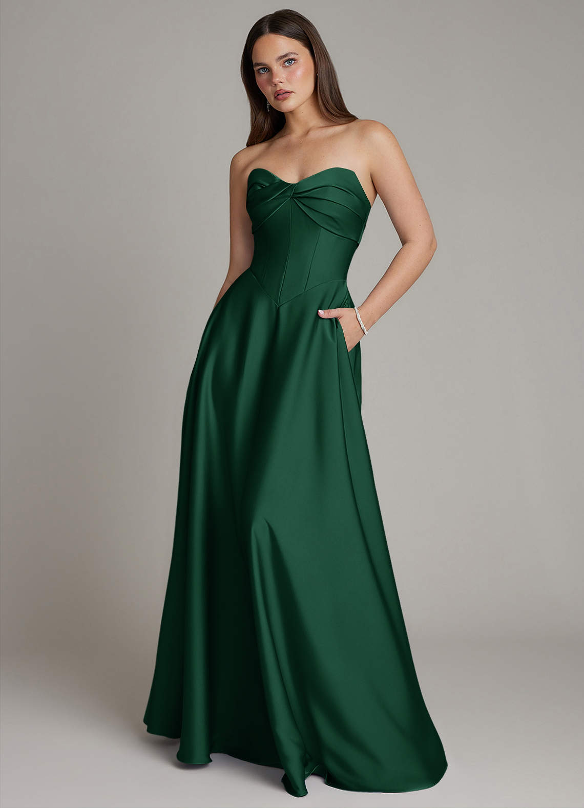 Dark Green A-Line Strapless Stretch Satin Dress