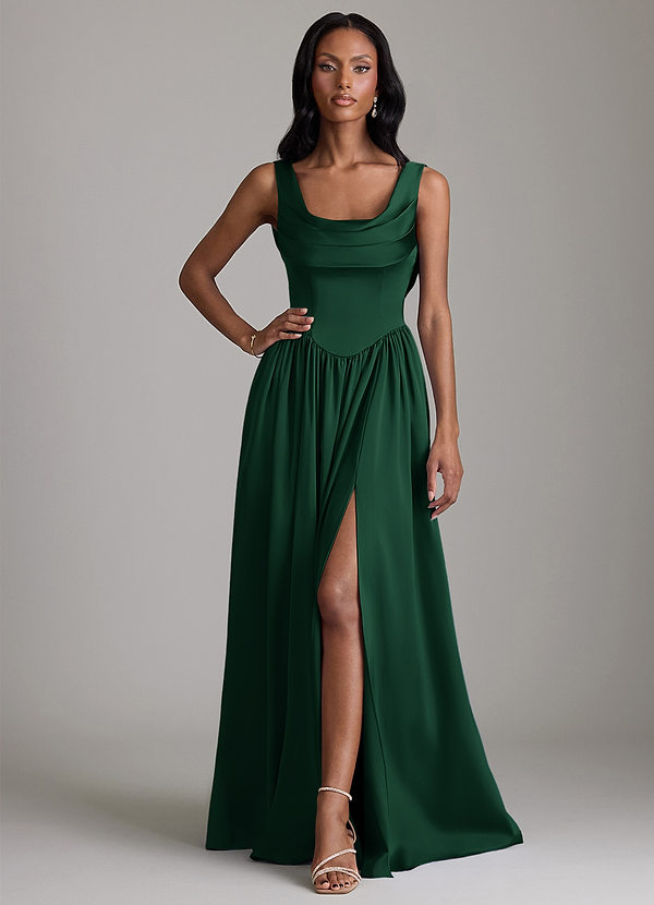 Dark Green Mermaid Side Slit Stretch Satin Dress