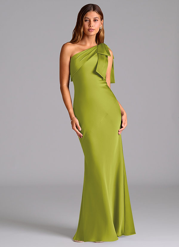 Lemongrass A-Line One Shoulder Chiffon Dress