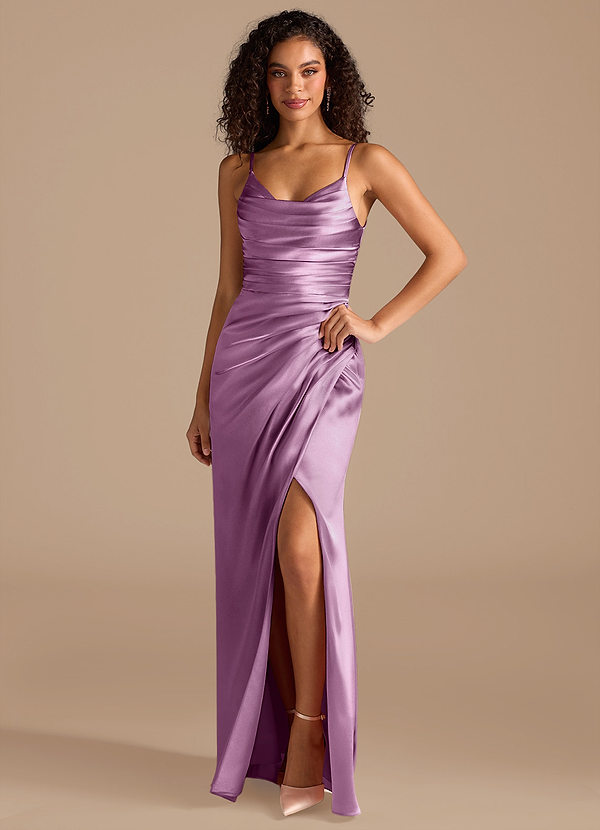 Wisteria A-Line Side Slit Metallic Satin Dress