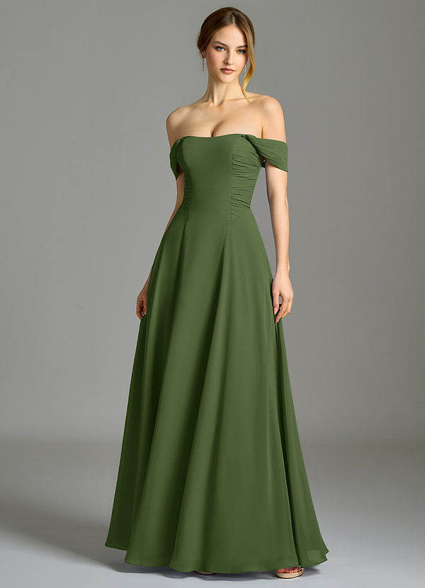 Olive A-Line with Pockets Chiffon Dress