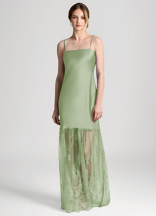 Dusty Sage Satin Lace Maxi Slip Dress