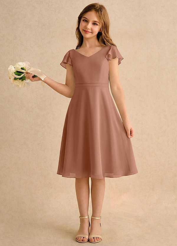 Bronzer A-Line with Sleeves Chiffon Dress
