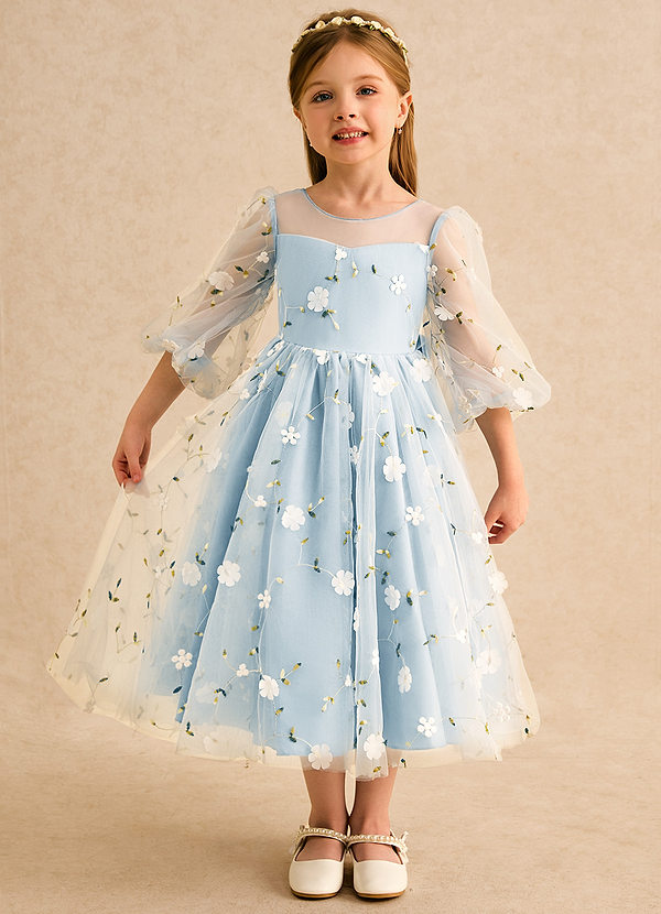 Ivory Sky Blue A-Line Bow Tulle Dress