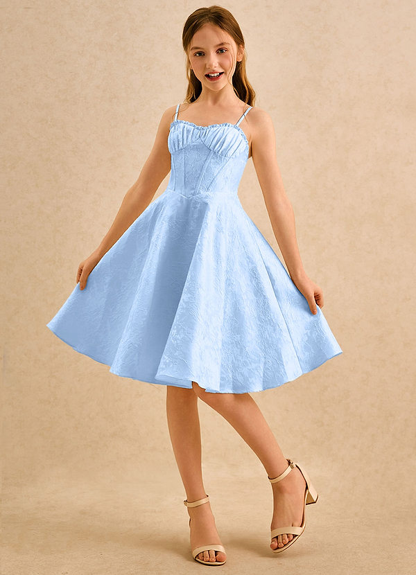 Sky Blue A-Line Sweetheart Neckline Floral Jacquard Dress