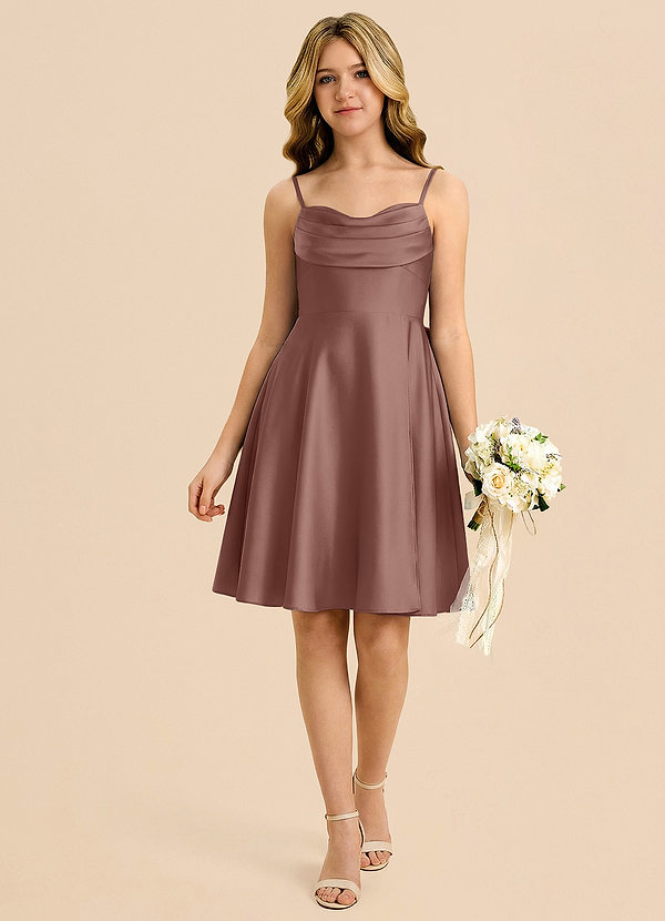Espresso A-Line Pleated Stretch Satin Dress