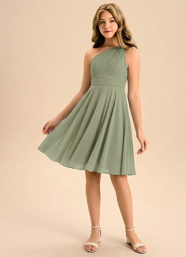 Pistachio A-Line Ruched Chiffon Dress