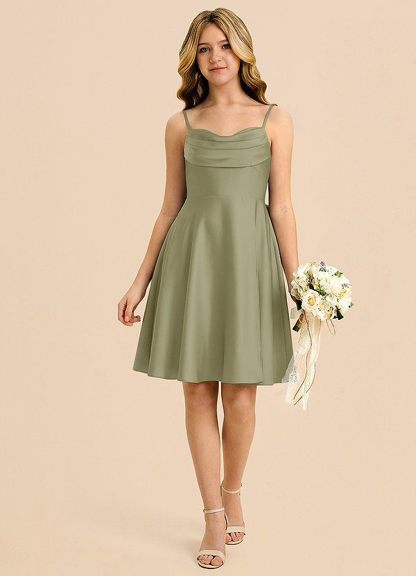 Pistachio A-Line Pleated Stretch Satin Dress