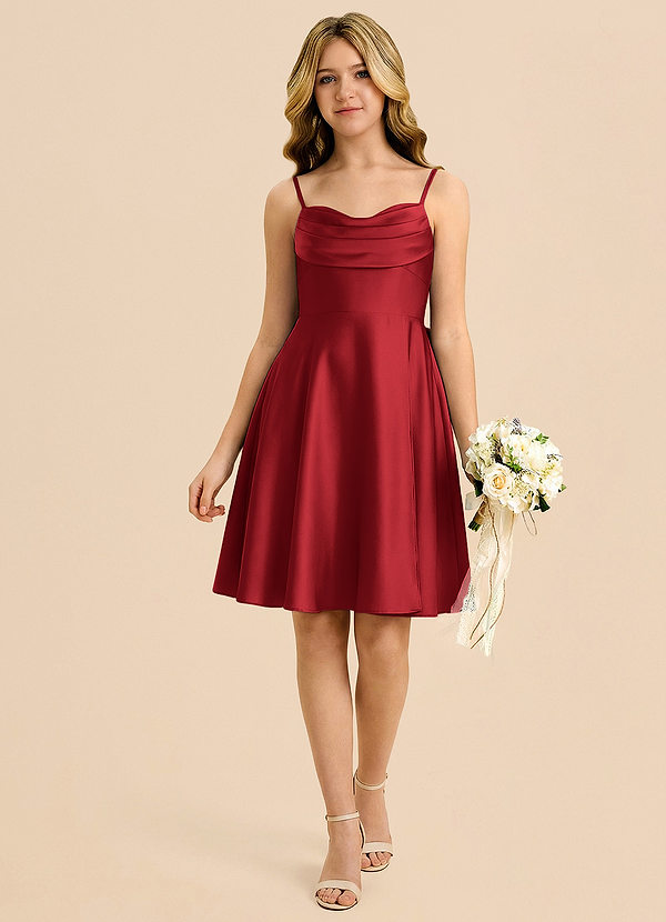 Pomegranate A-Line Pleated Stretch Satin Dress