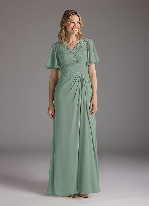 64 Items Silver Sage A-Line Pleated Stretch Satin Dress