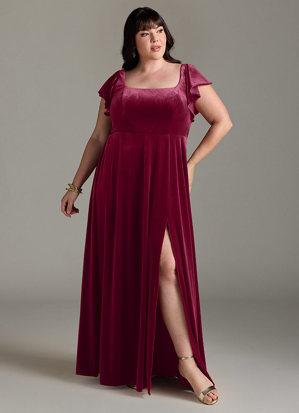 Burgundy A-Line Side Slit Velvet Dress