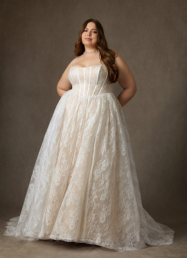 I was pretty much sold after ordering a Champagne color swatch from Azazie. It just looked so luxurious and different from a traditional white gown. I thought that it went even better with the bridal party and my husband's suit than white. Highly recommend!