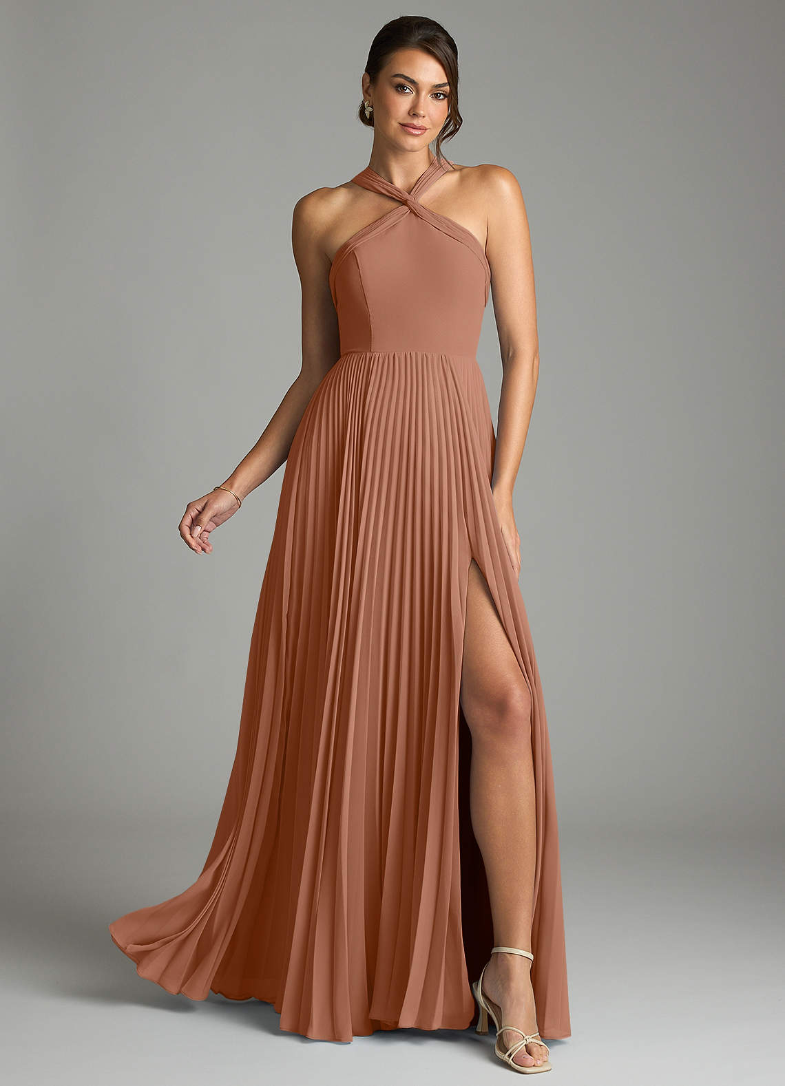 Bronzer A-Line Pleated Chiffon Dress