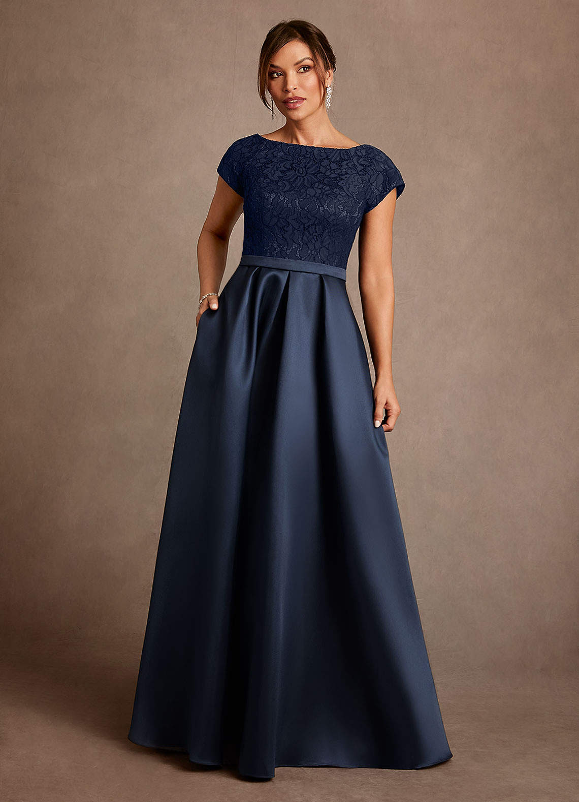 Dark Navy A-Line Pleated Lace Dress
