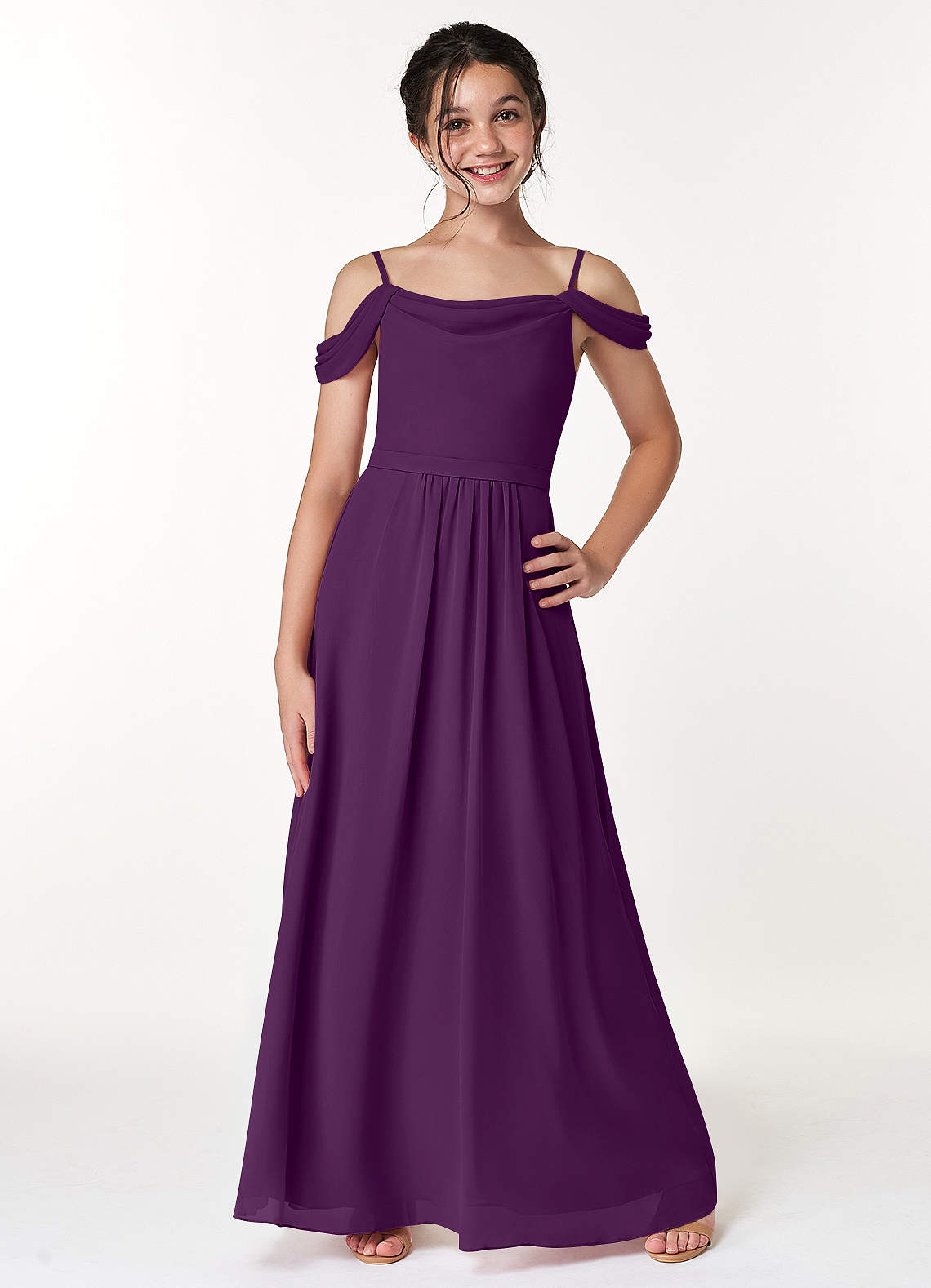 Grape A-Line Off the Shoulder Chiffon Dress