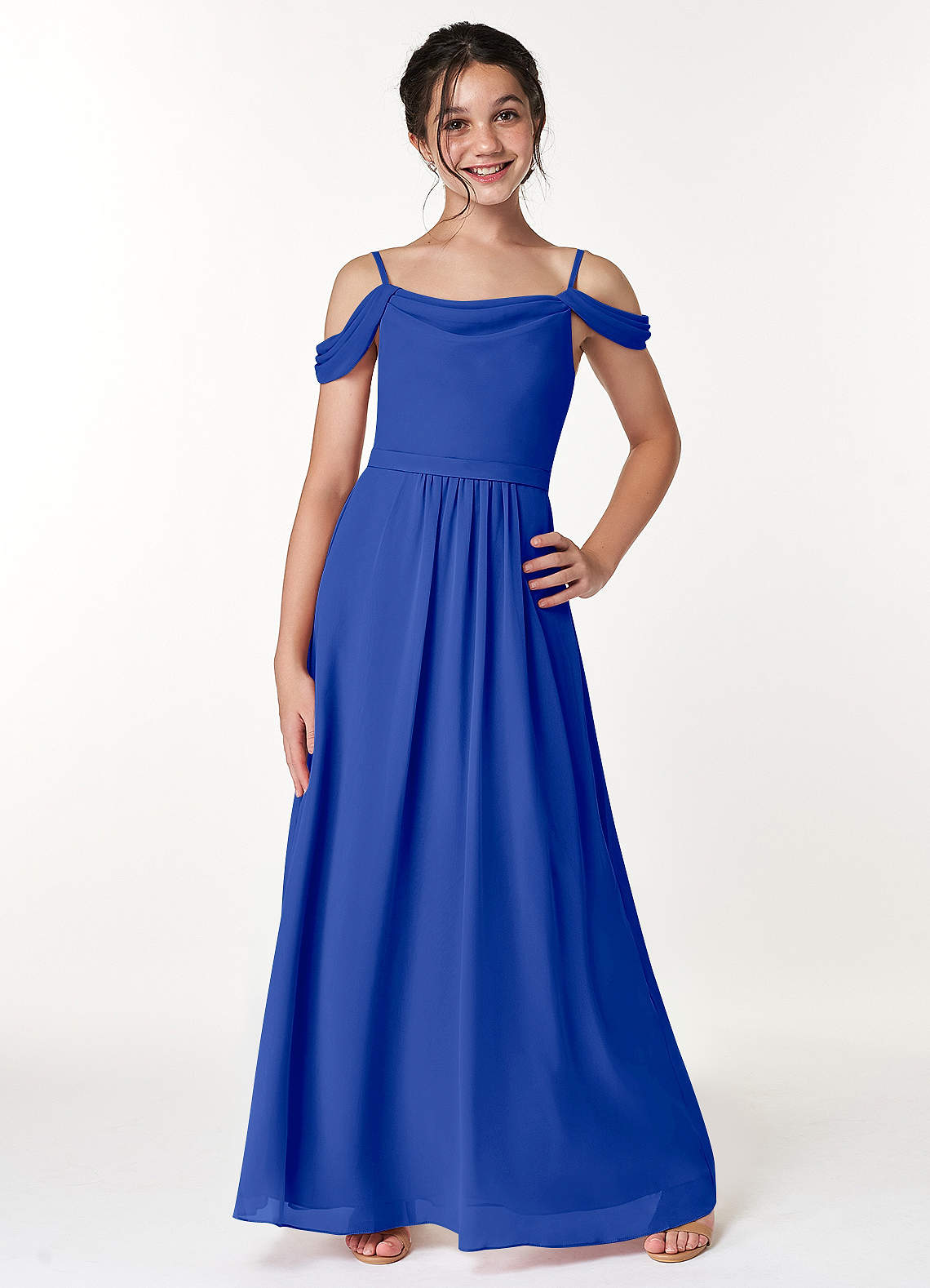 Royal Blue A-Line Off the Shoulder Chiffon Dress