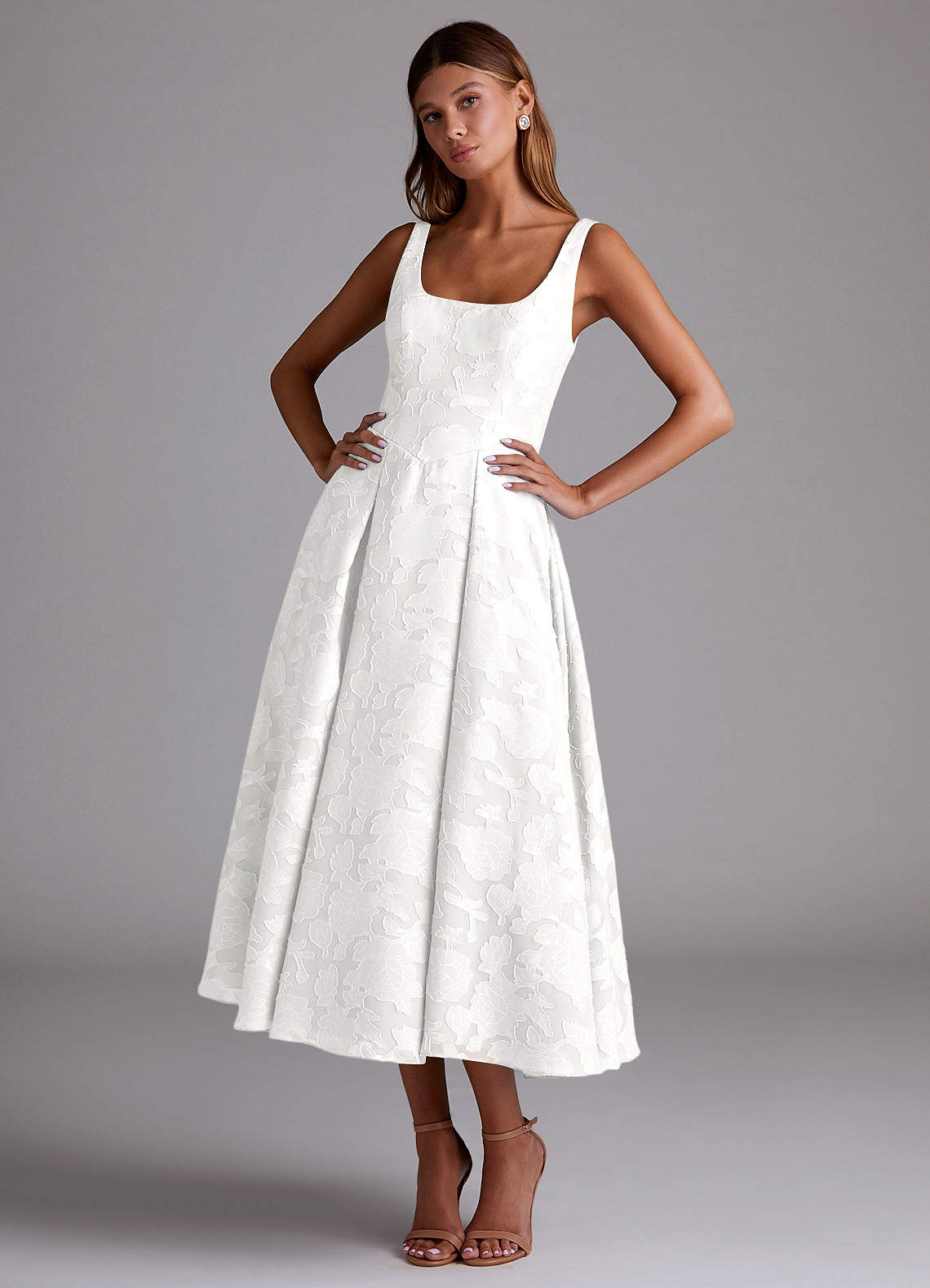 White A-Line Pleated Floral Burnout Dress