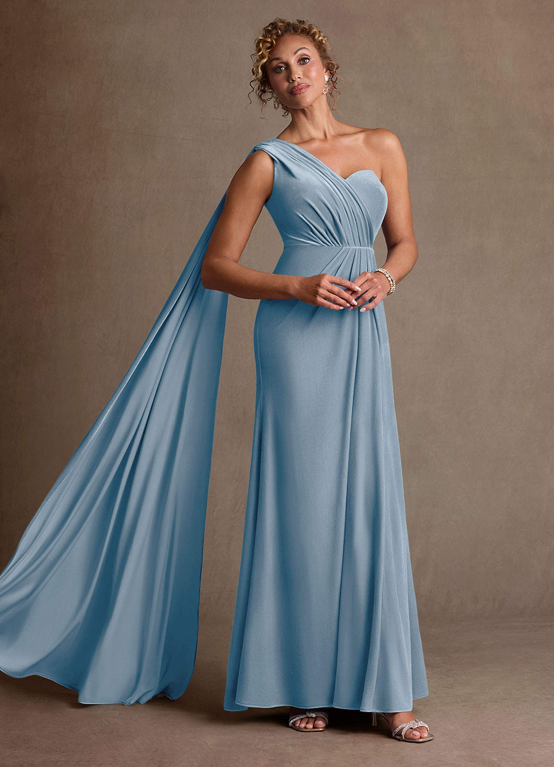Dusty Blue Sheath One Shoulder Velvet Dress