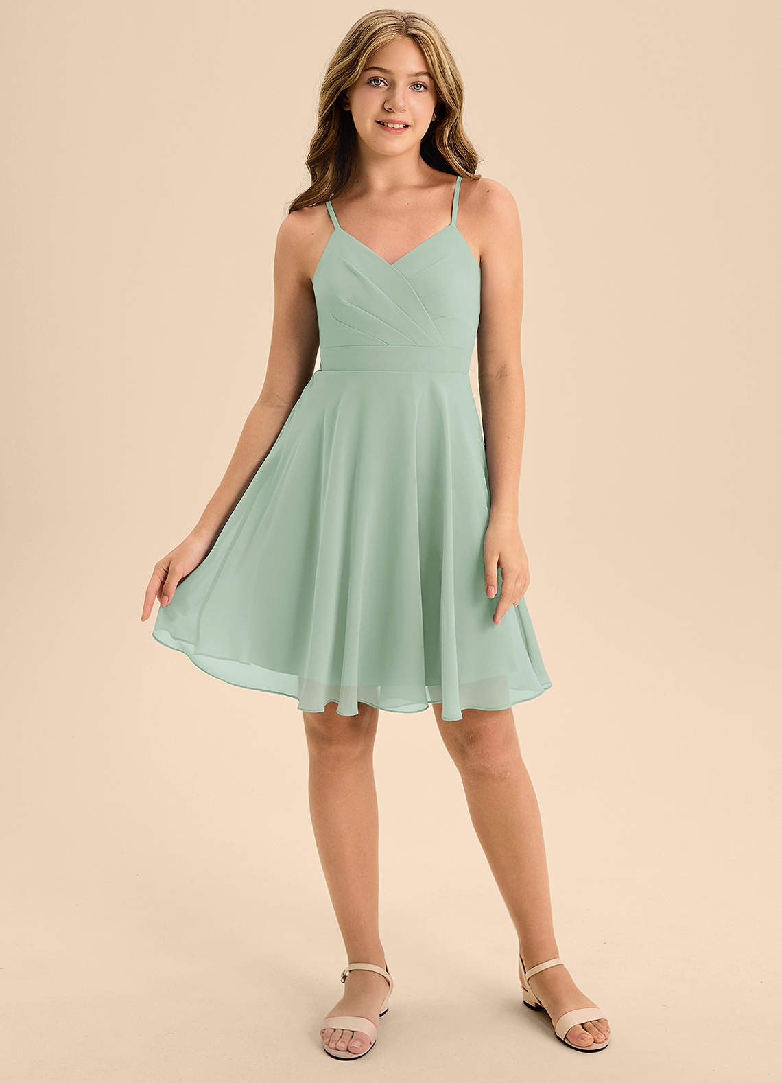 Agave A-Line Pleated Chiffon Dress