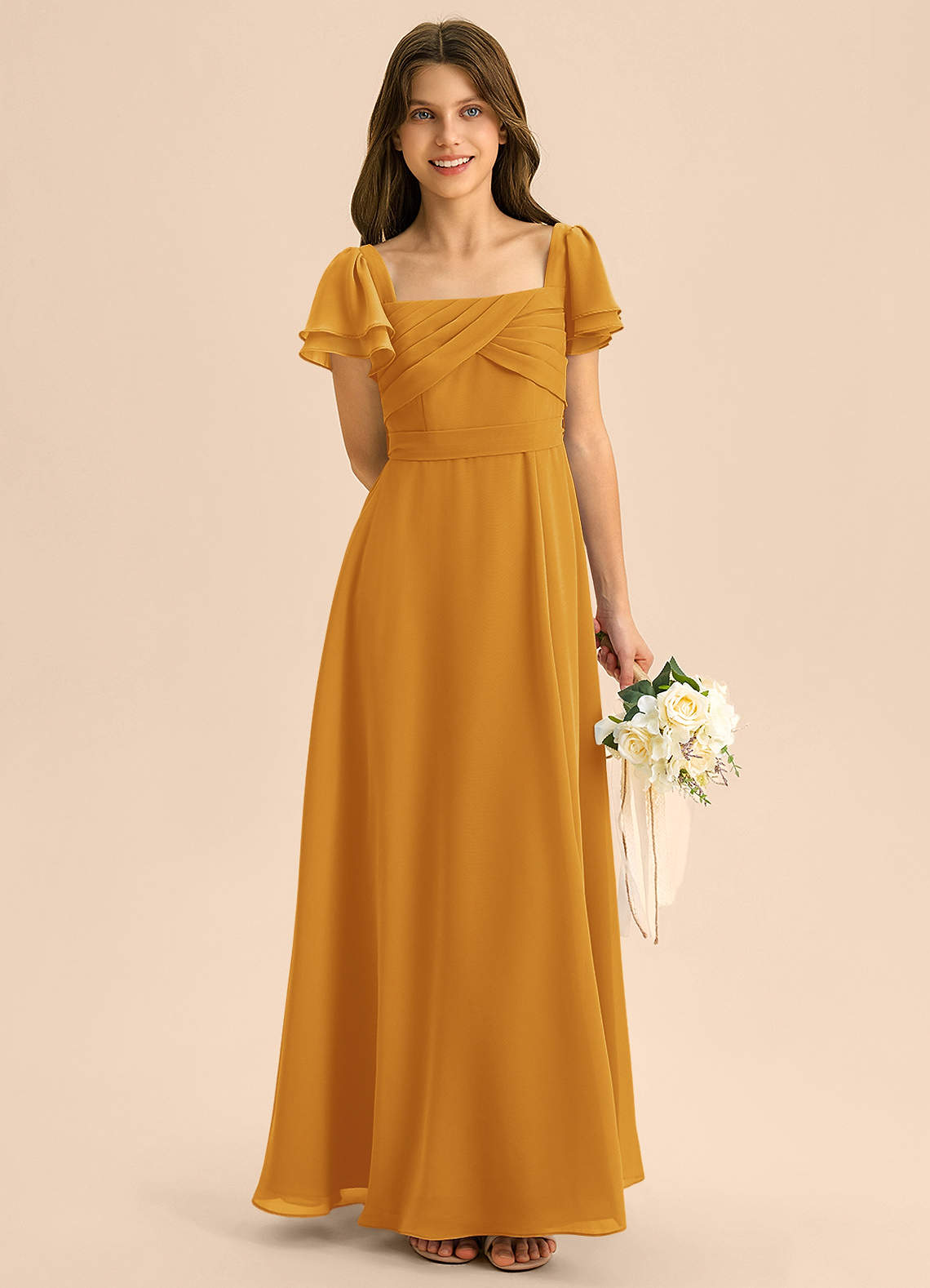 Butterscotch A-Line Ruched Chiffon Dress