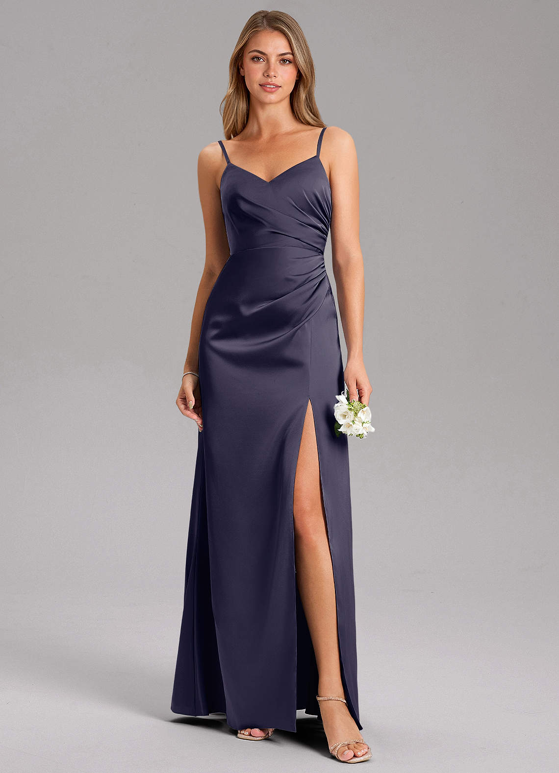 Azazie Azuree Bridesmaid Dresses Stormy A-Line Pleated Stretch Satin Dress image1