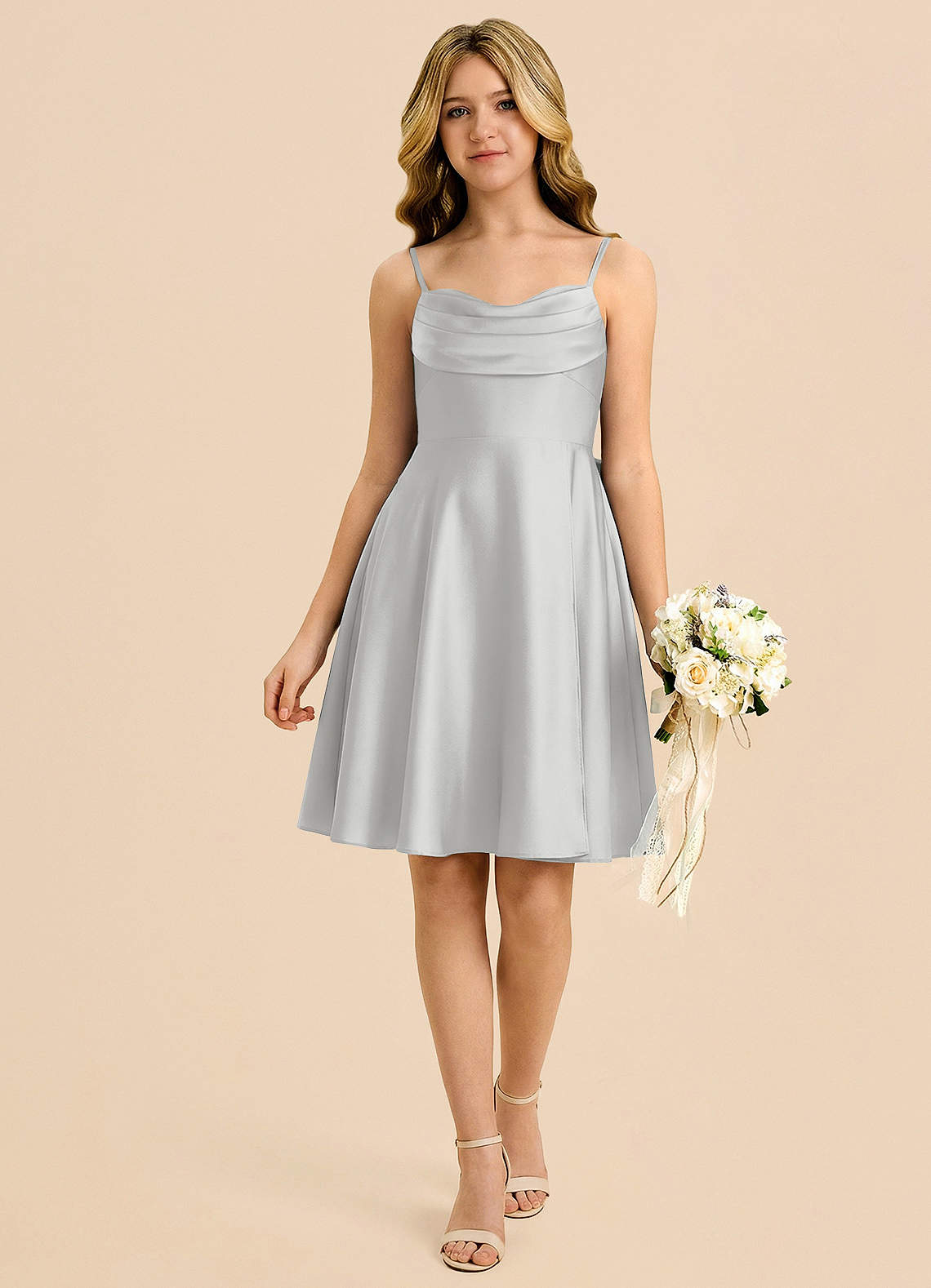 Silver A-Line Sweetheart Neckline Stretch Satin Dress