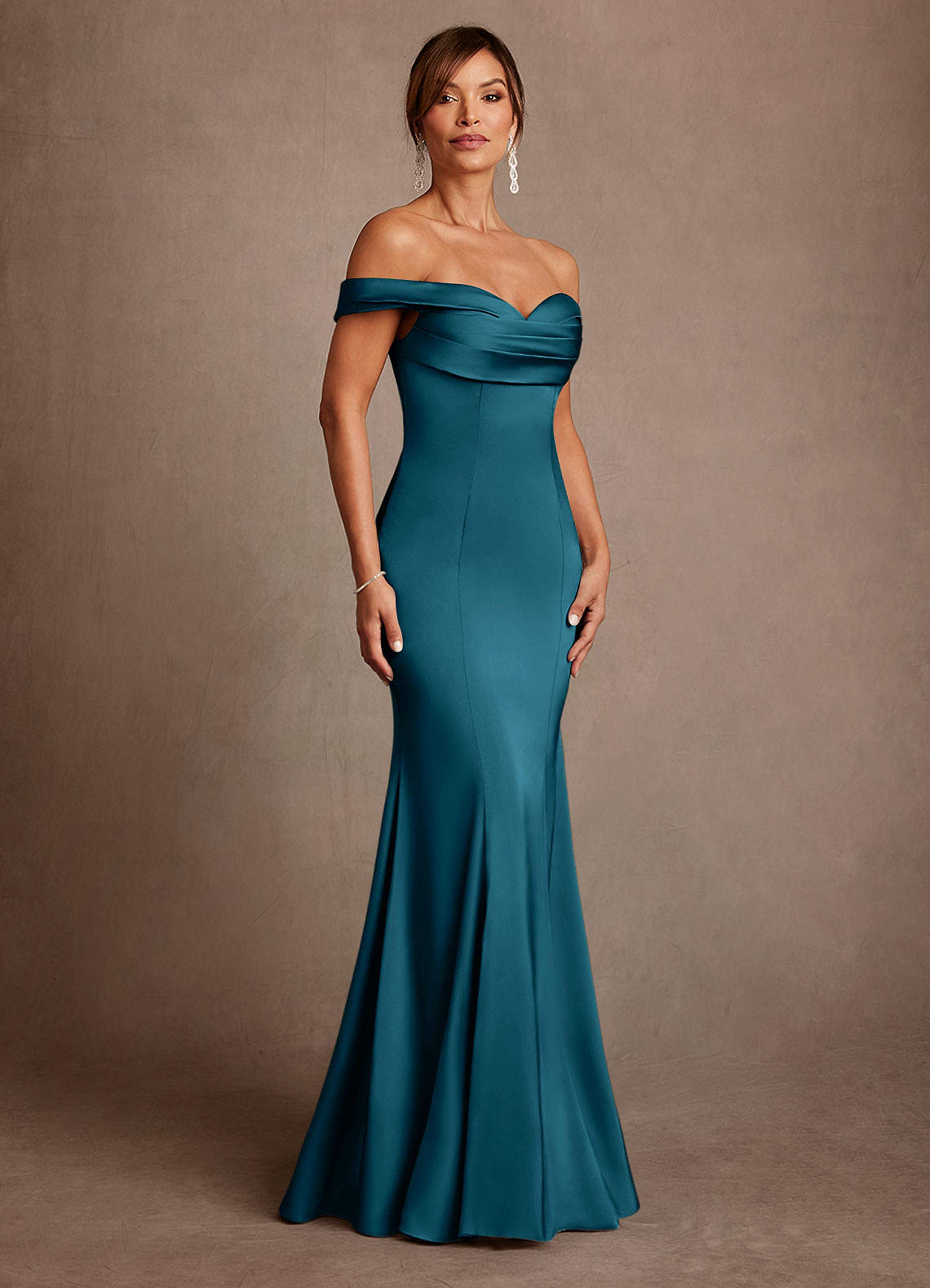 Ink Blue Mermaid Off the Shoulder Stretch Satin Dress