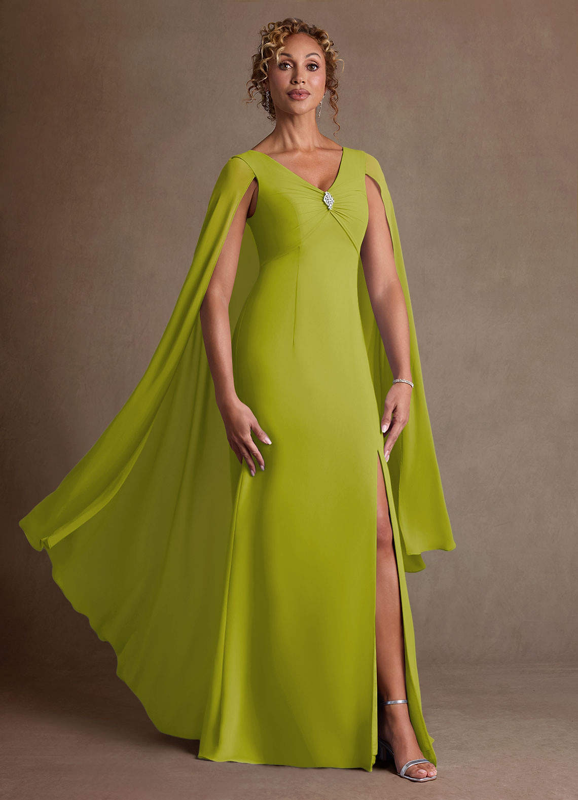 Lemongrass A-Line Pleated Chiffon Dress