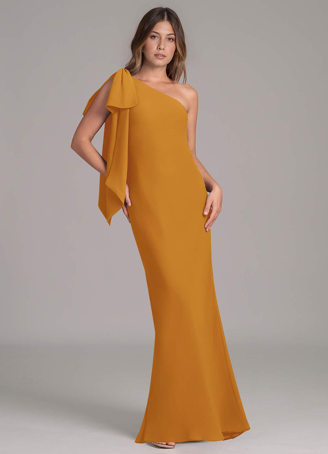 Butterscotch A-Line One Shoulder Chiffon Dress