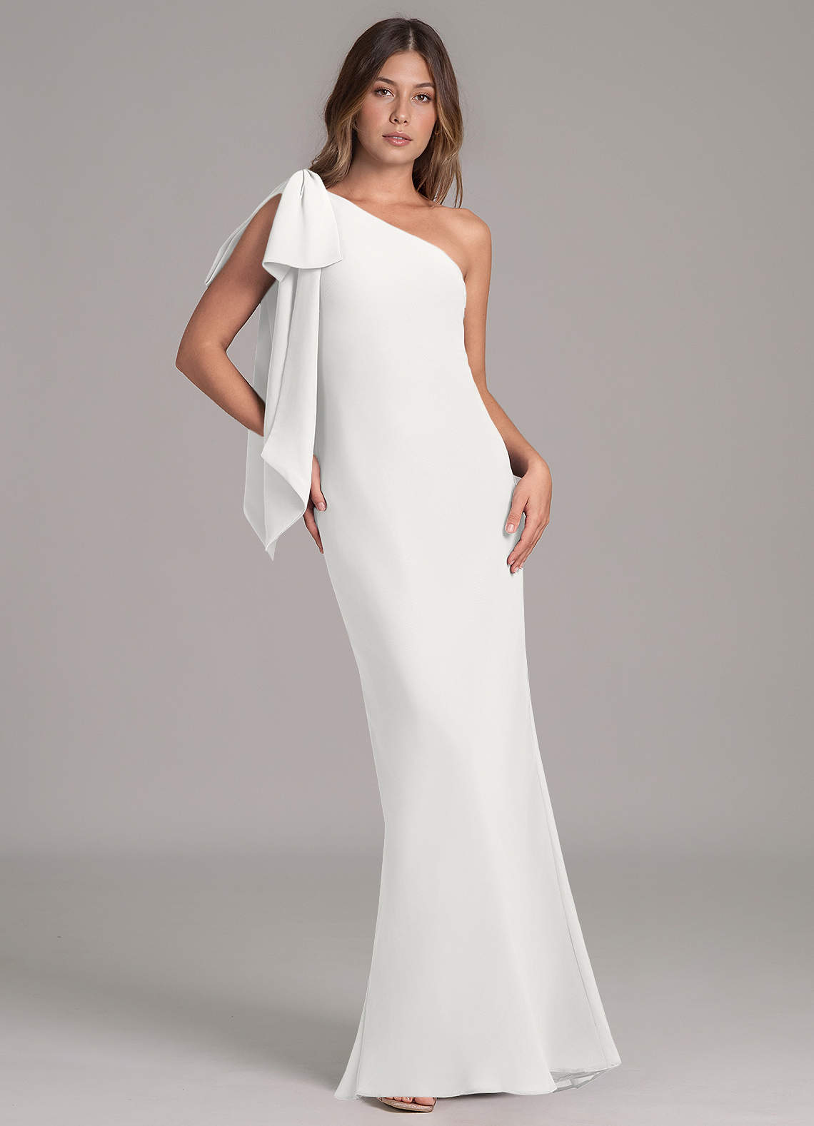 White A-Line One Shoulder Chiffon Dress