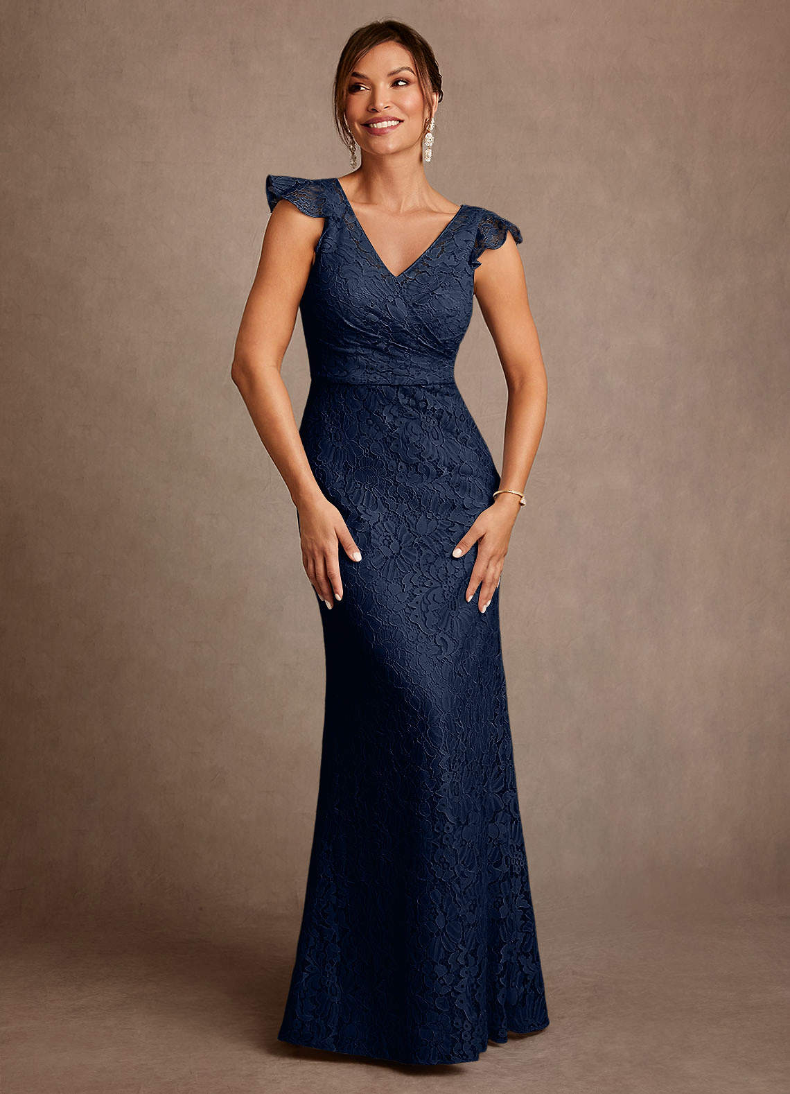 Dark Navy A-Line Pleated Lace Dress