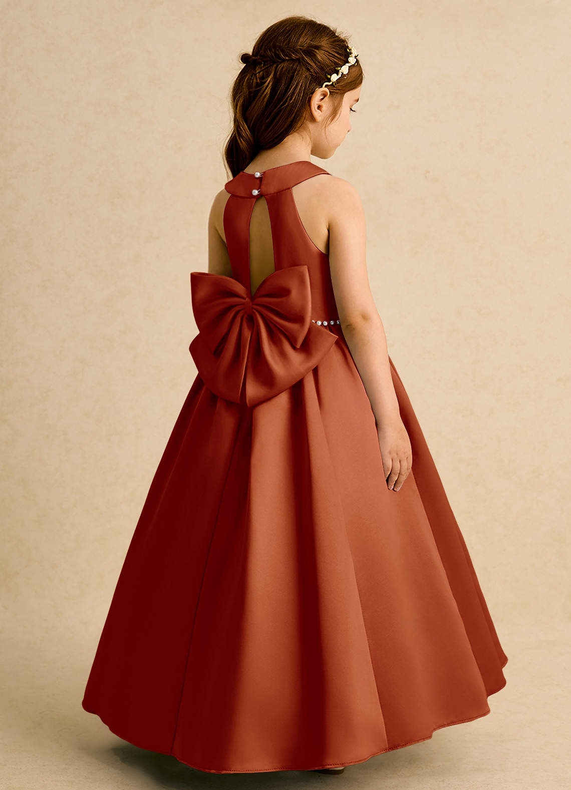 Paprika Ball-Gown Bow Matte Satin Dress