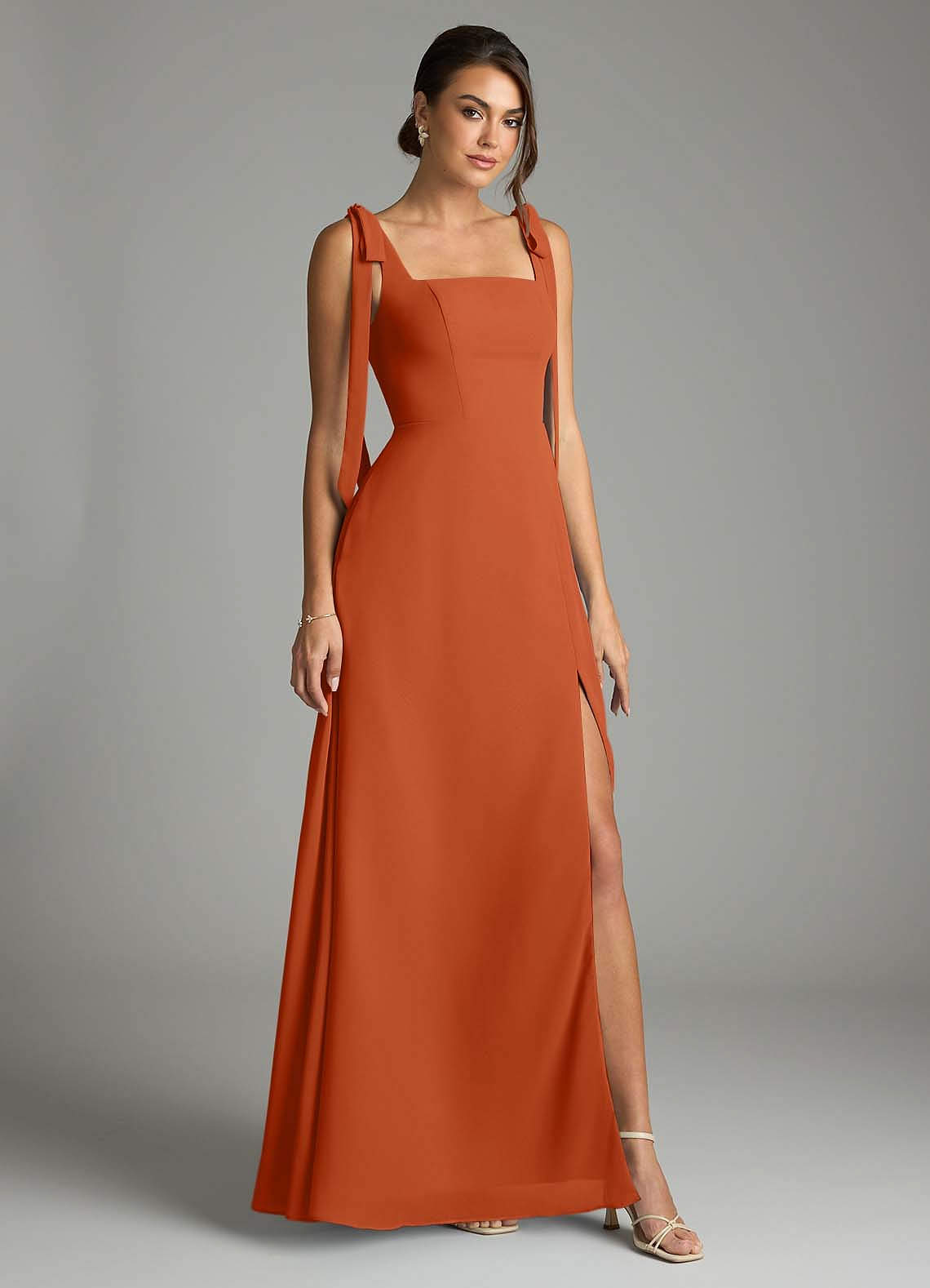 Burnt Orange A-Line with Pockets Chiffon Convertible Dress