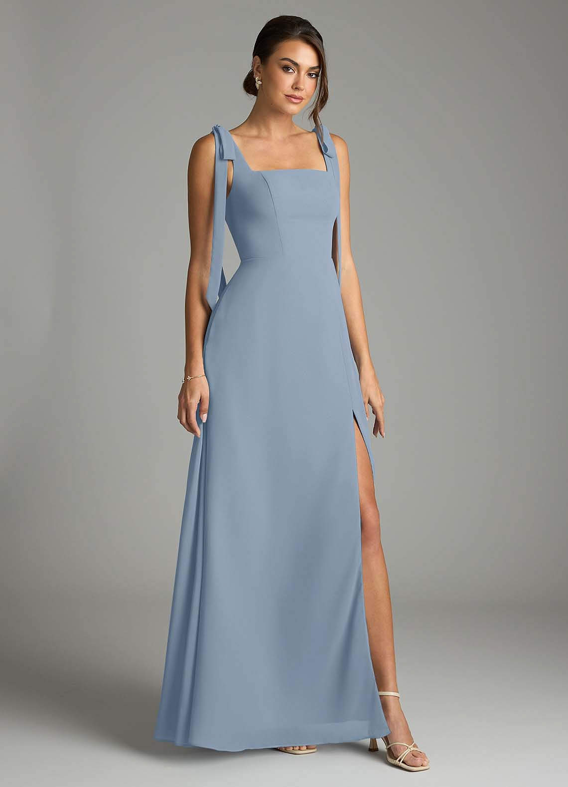 Dusty Blue A-Line with Pockets Chiffon Convertible Dress