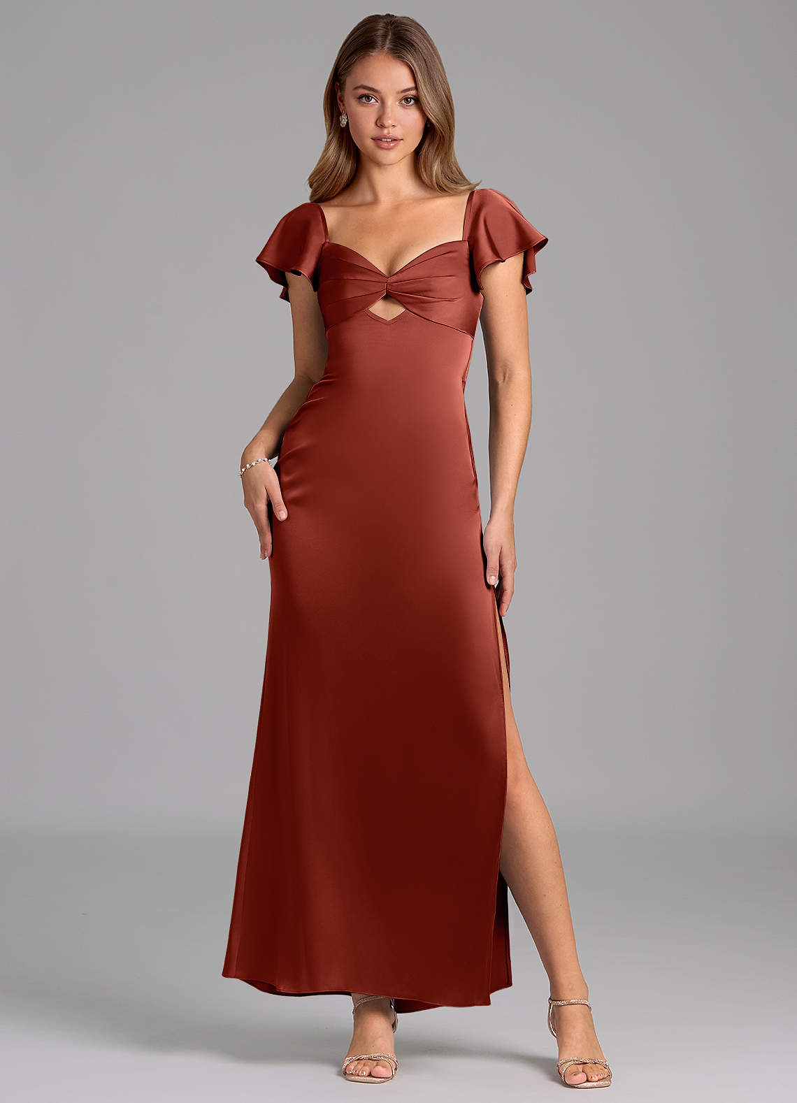Terracotta Sheath Sweetheart Neckline Stretch Satin Dress