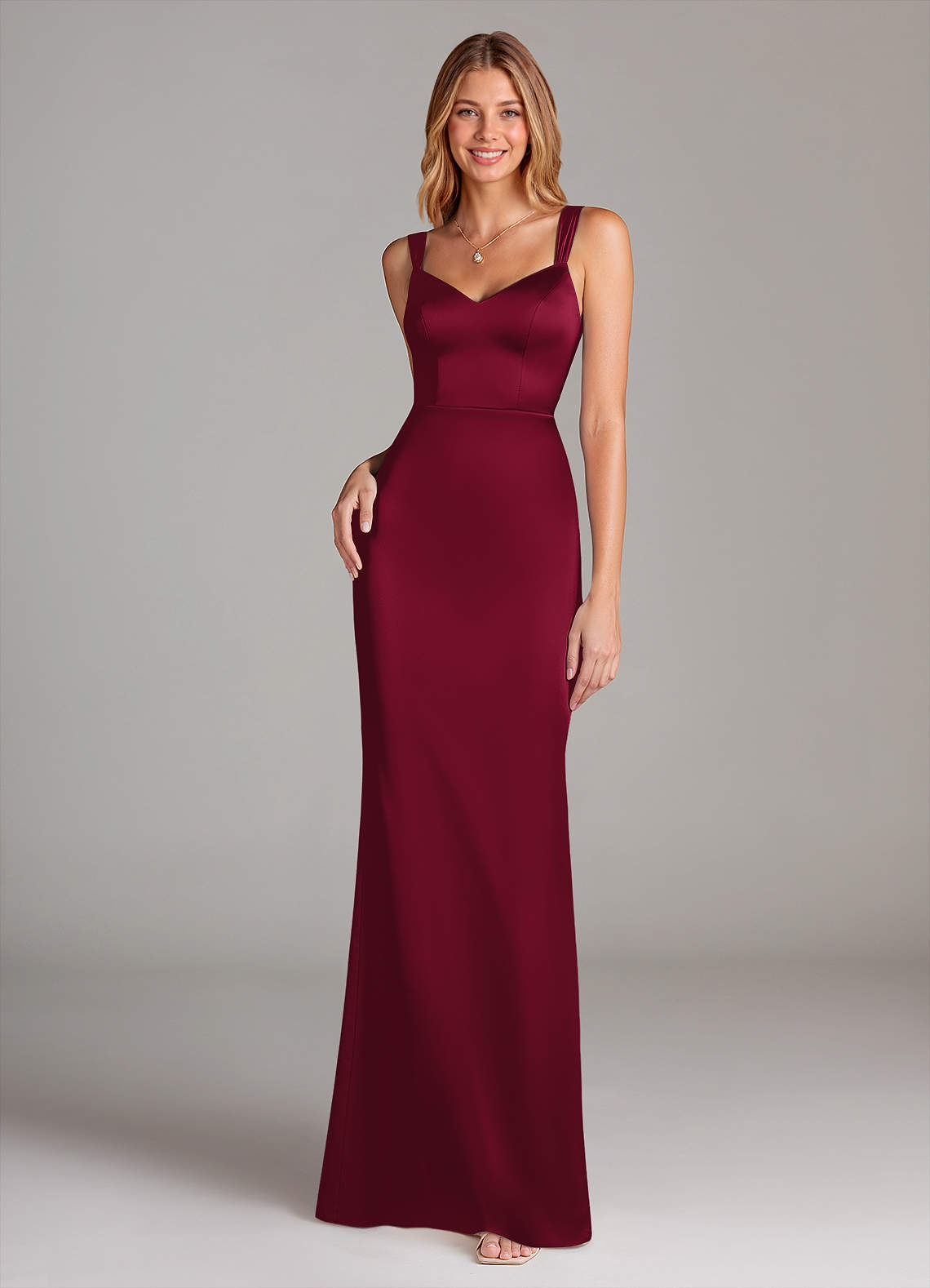 Burgundy Sheath Pleated Stretch Satin Dress