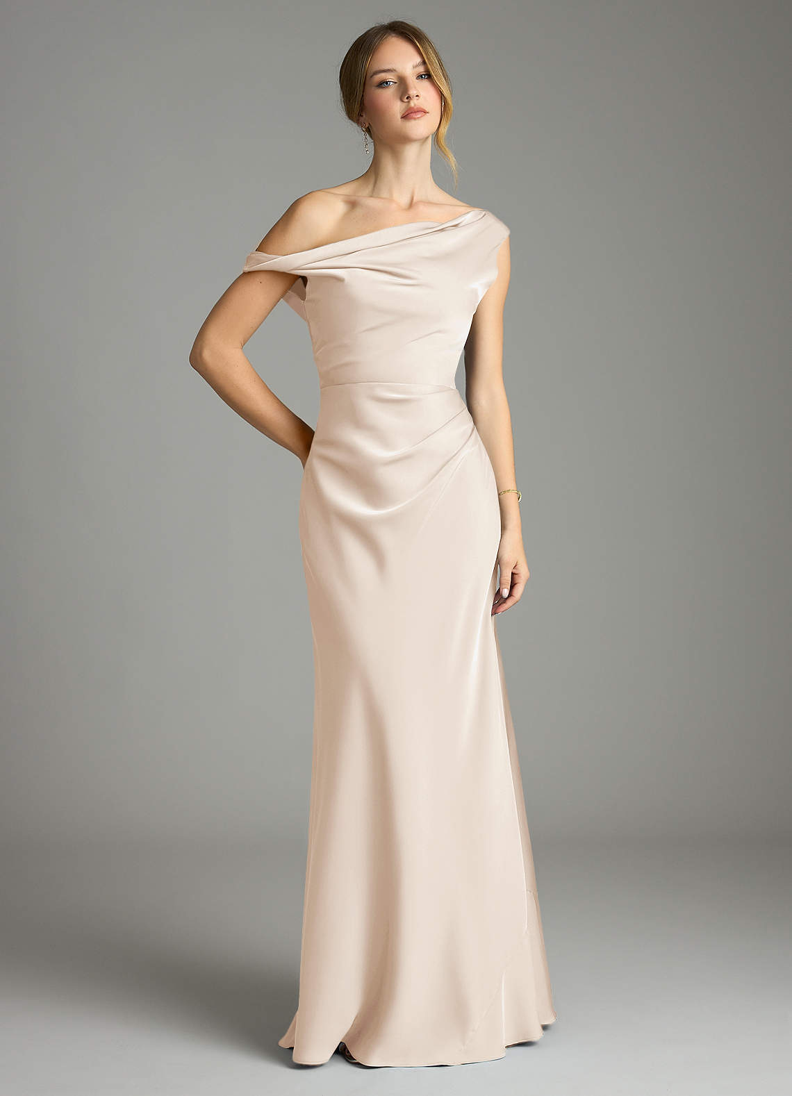 White Alabaster Mermaid Off the Shoulder Stretch Satin Dress