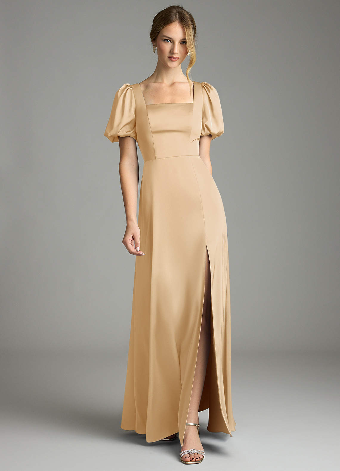 Gold A-Line Pleated Stretch Satin Dress