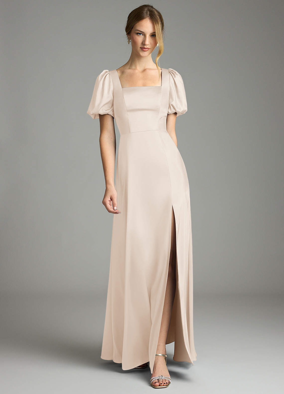 Azazie Fyona Bridesmaid Dresses White Alabaster A-Line Pleated Stretch Satin Dress image1