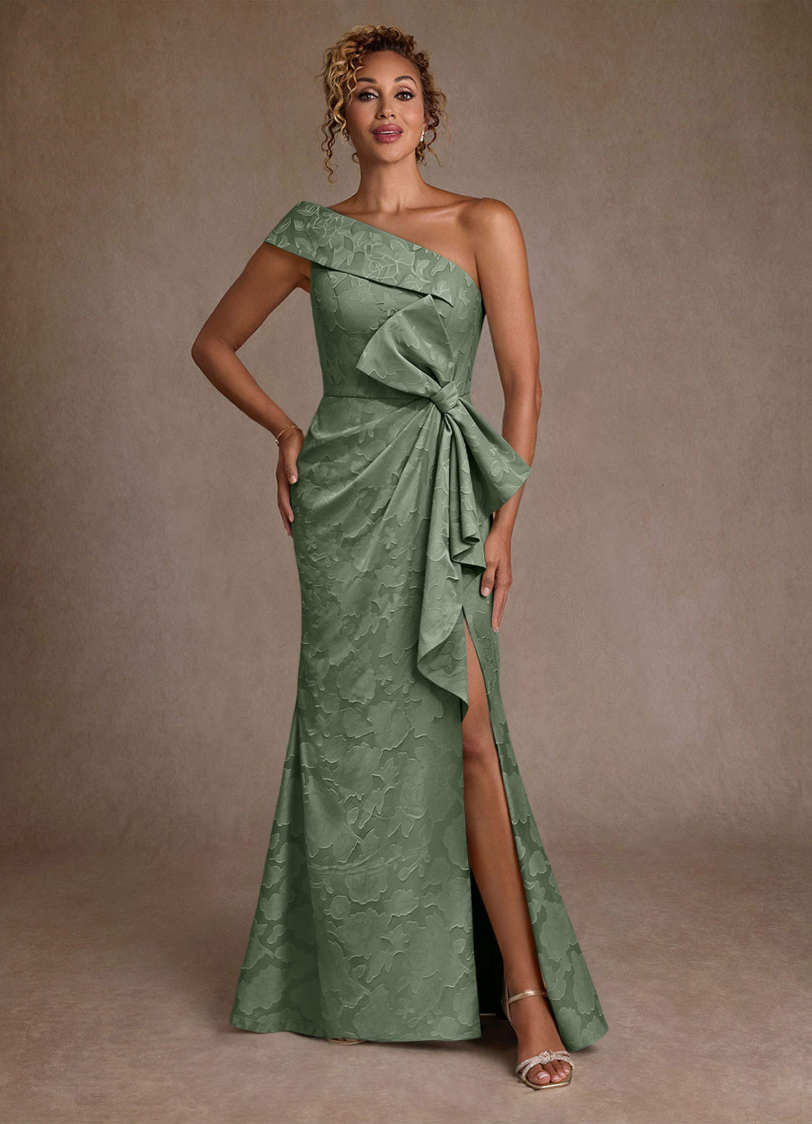Matcha Mermaid One Shoulder Floral Burnout Dress