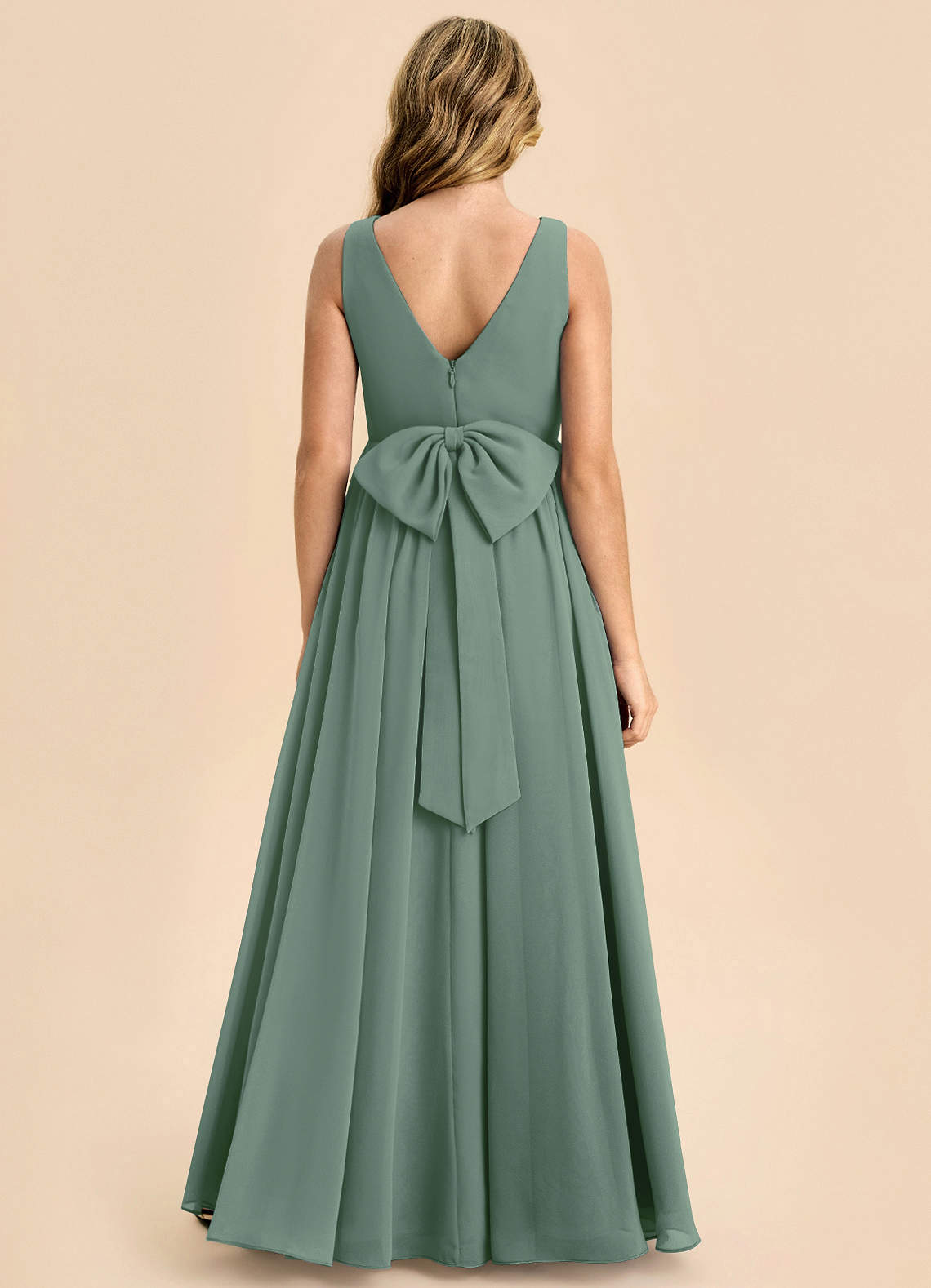 Eucalyptus A-Line Bow Chiffon Dress