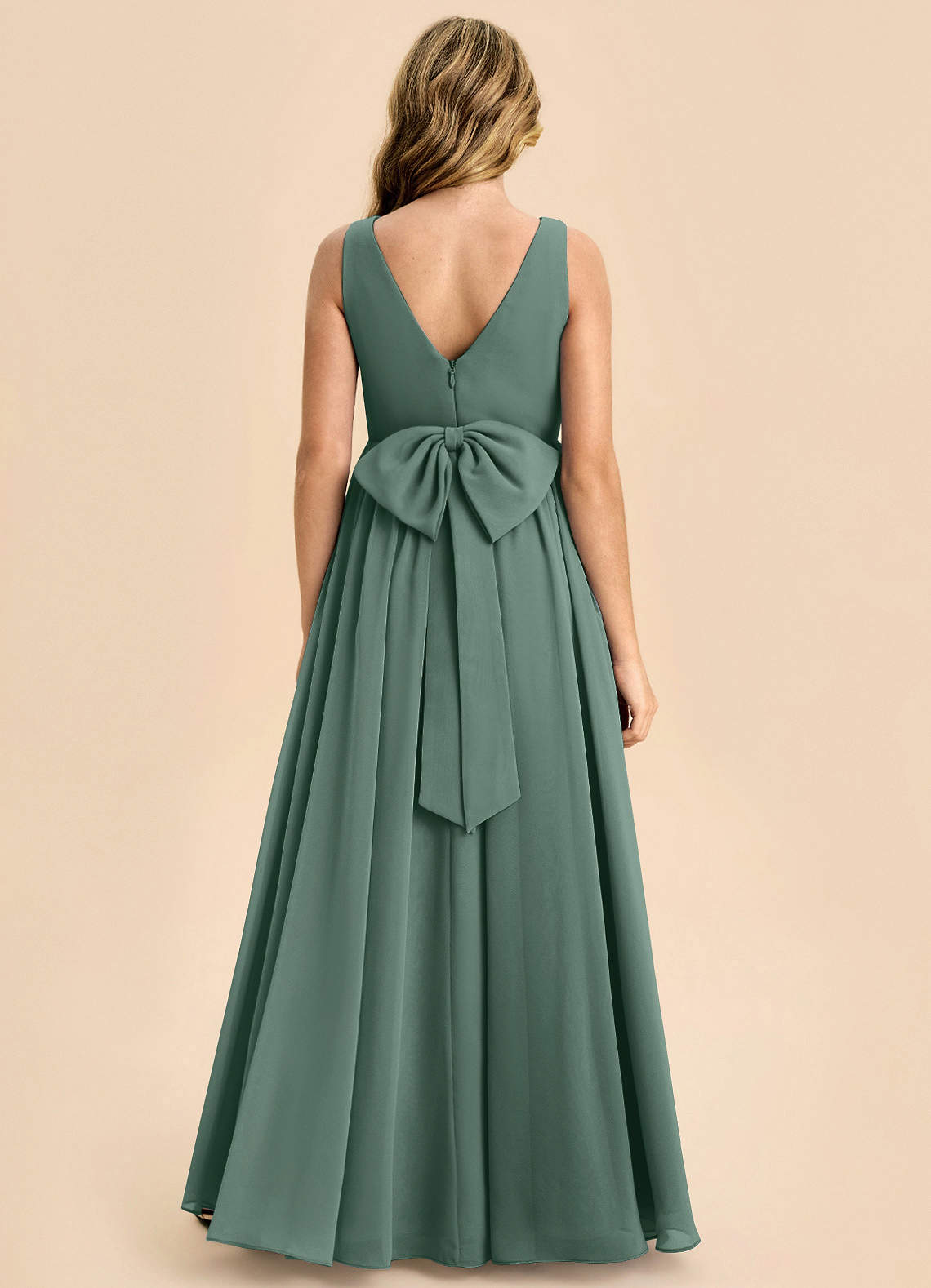 Sea Moss A-Line Bow Chiffon Dress