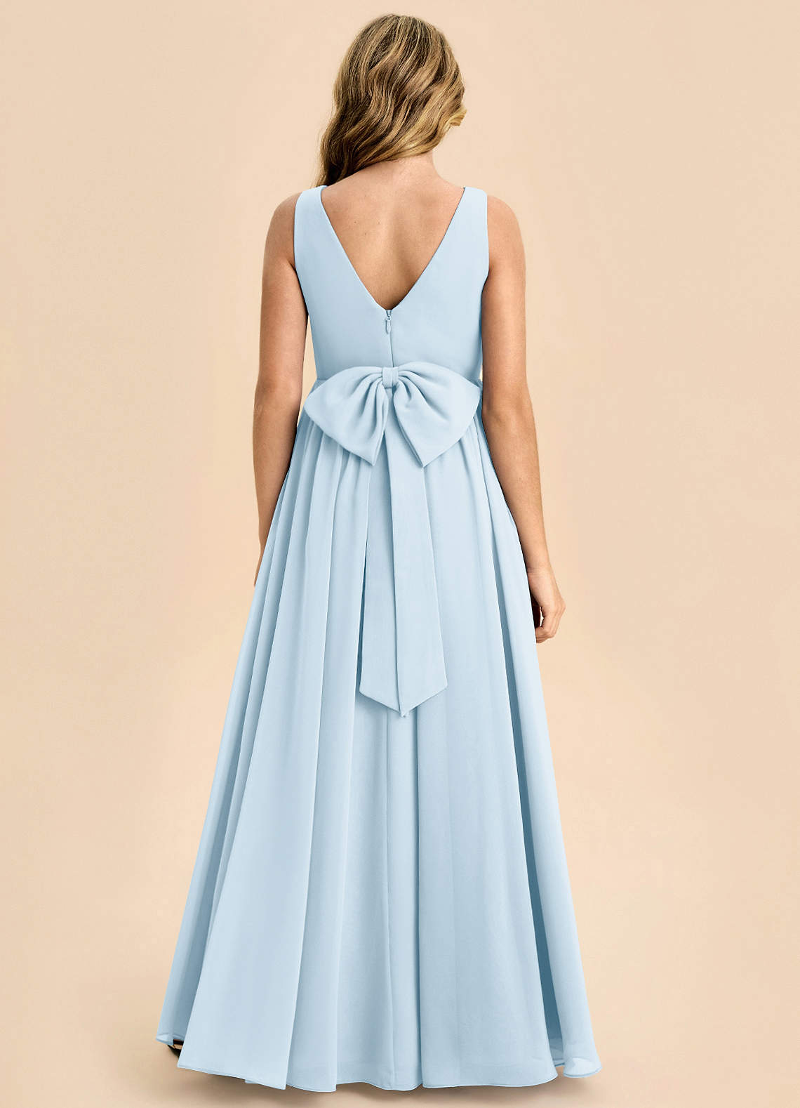 Sky Blue A-Line Bow Chiffon Dress