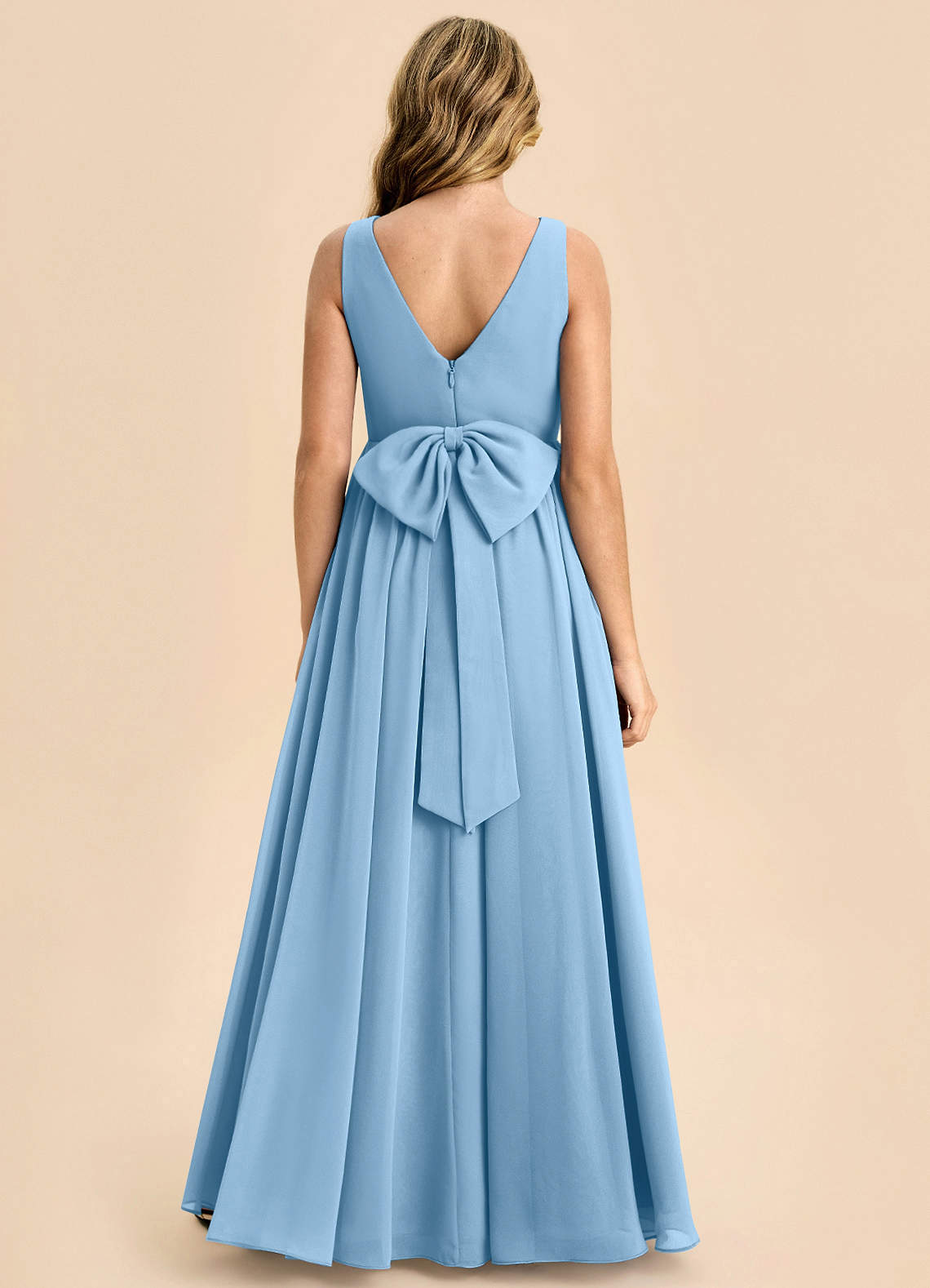 Steel Blue A-Line Bow Chiffon Dress