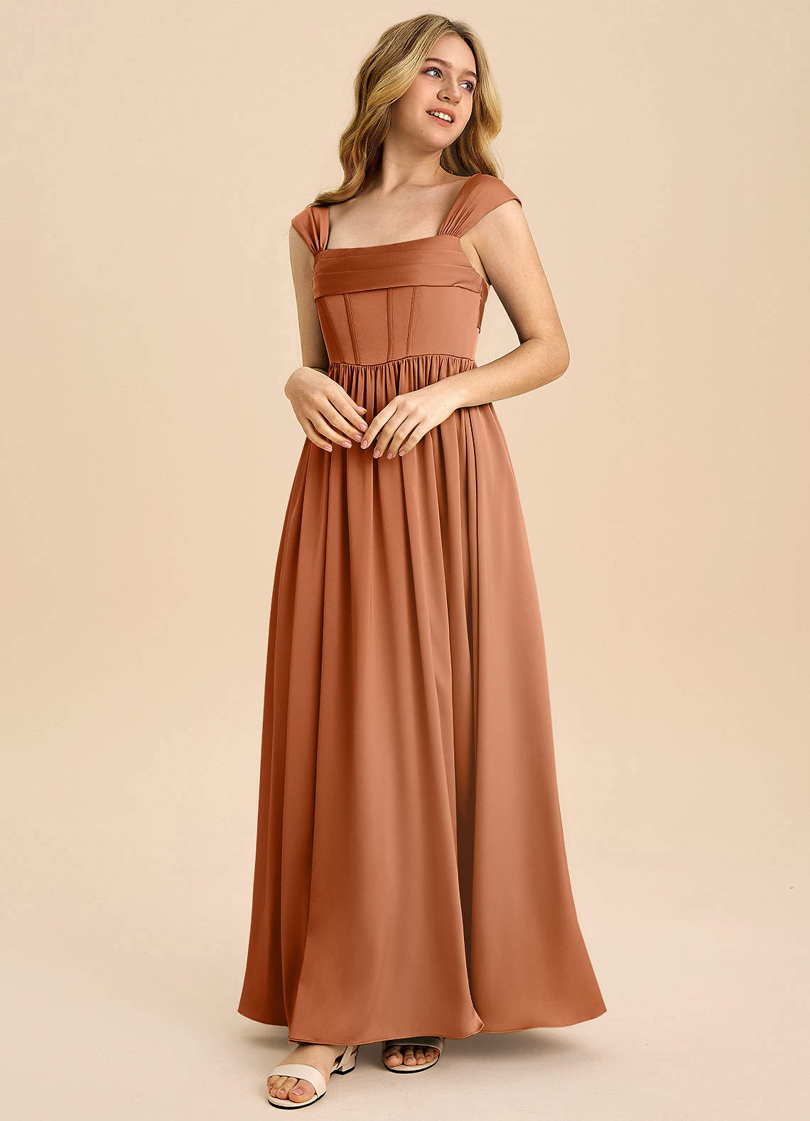 Copper A-Line Pleated Stretch Satin Dress