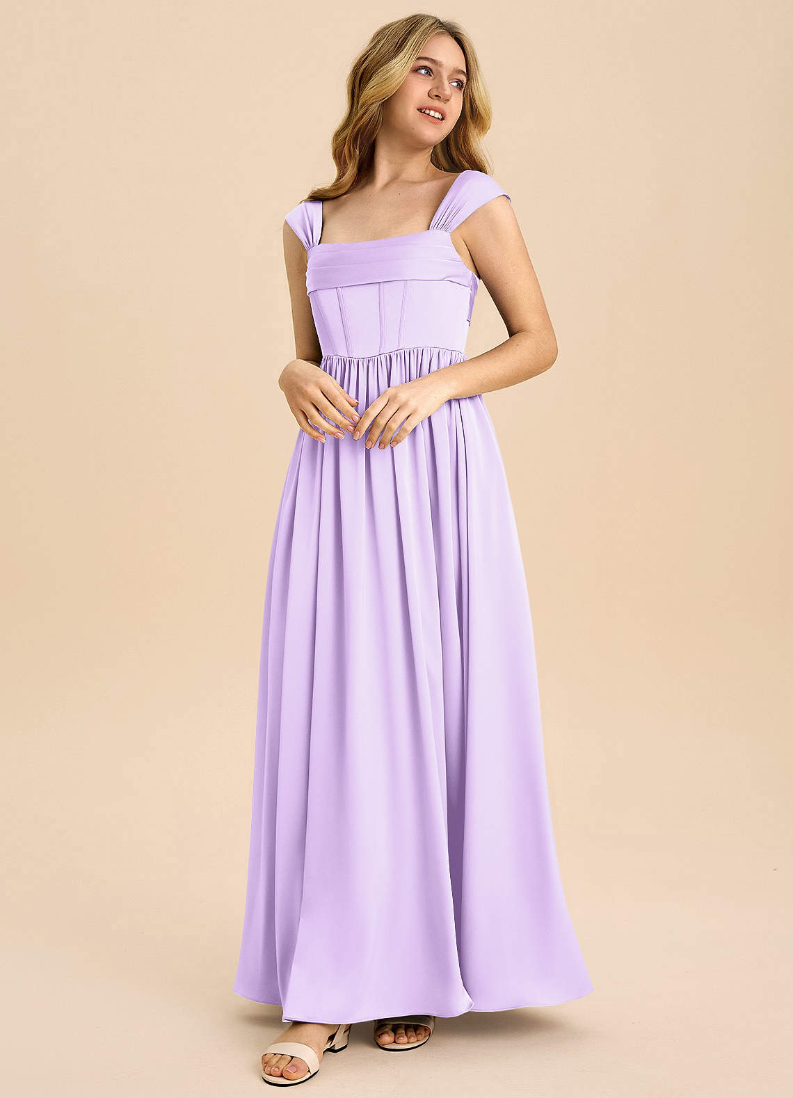 Lilac A-Line Pleated Stretch Satin Dress