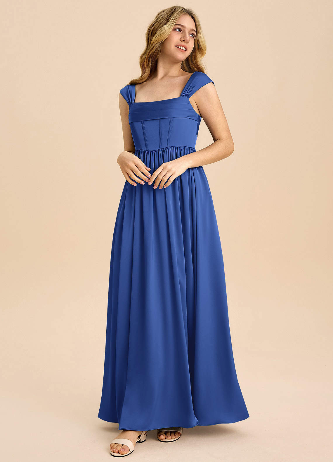 Royal Blue A-Line Pleated Stretch Satin Dress