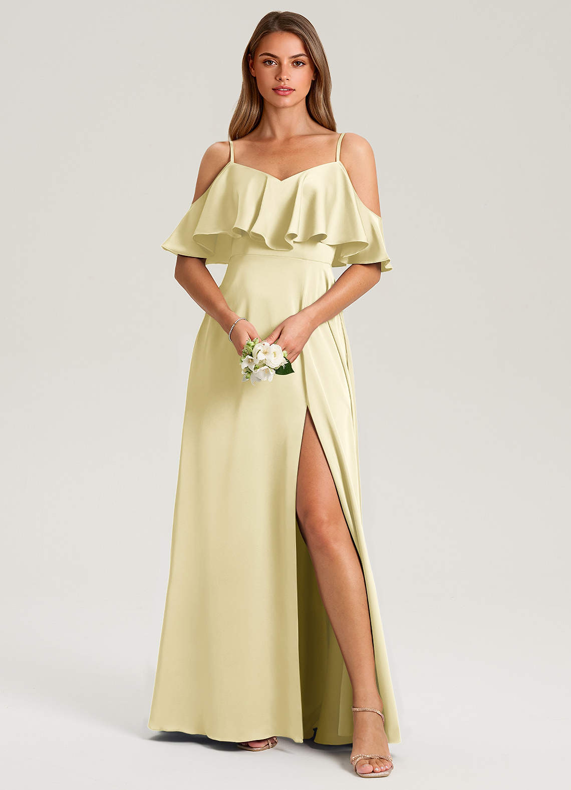 Lemon Sorbet A-Line Off the Shoulder Stretch Satin Dress