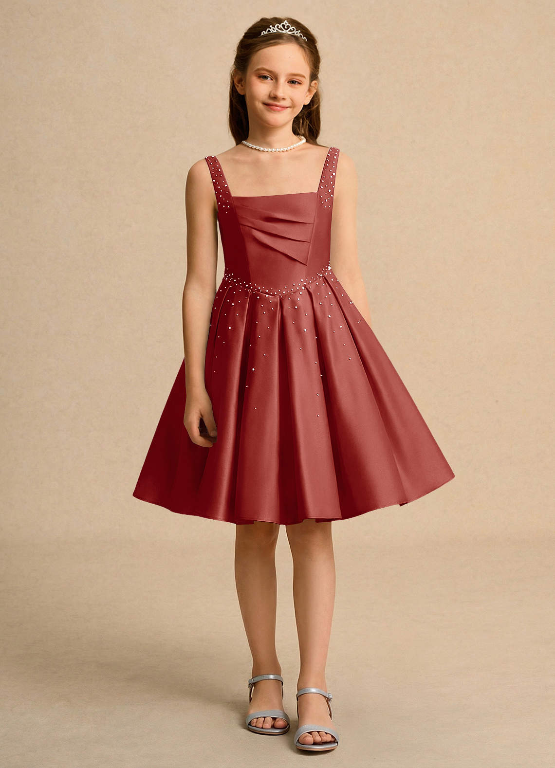 Terracotta Ball-Gown Pleated Matte Satin Dress